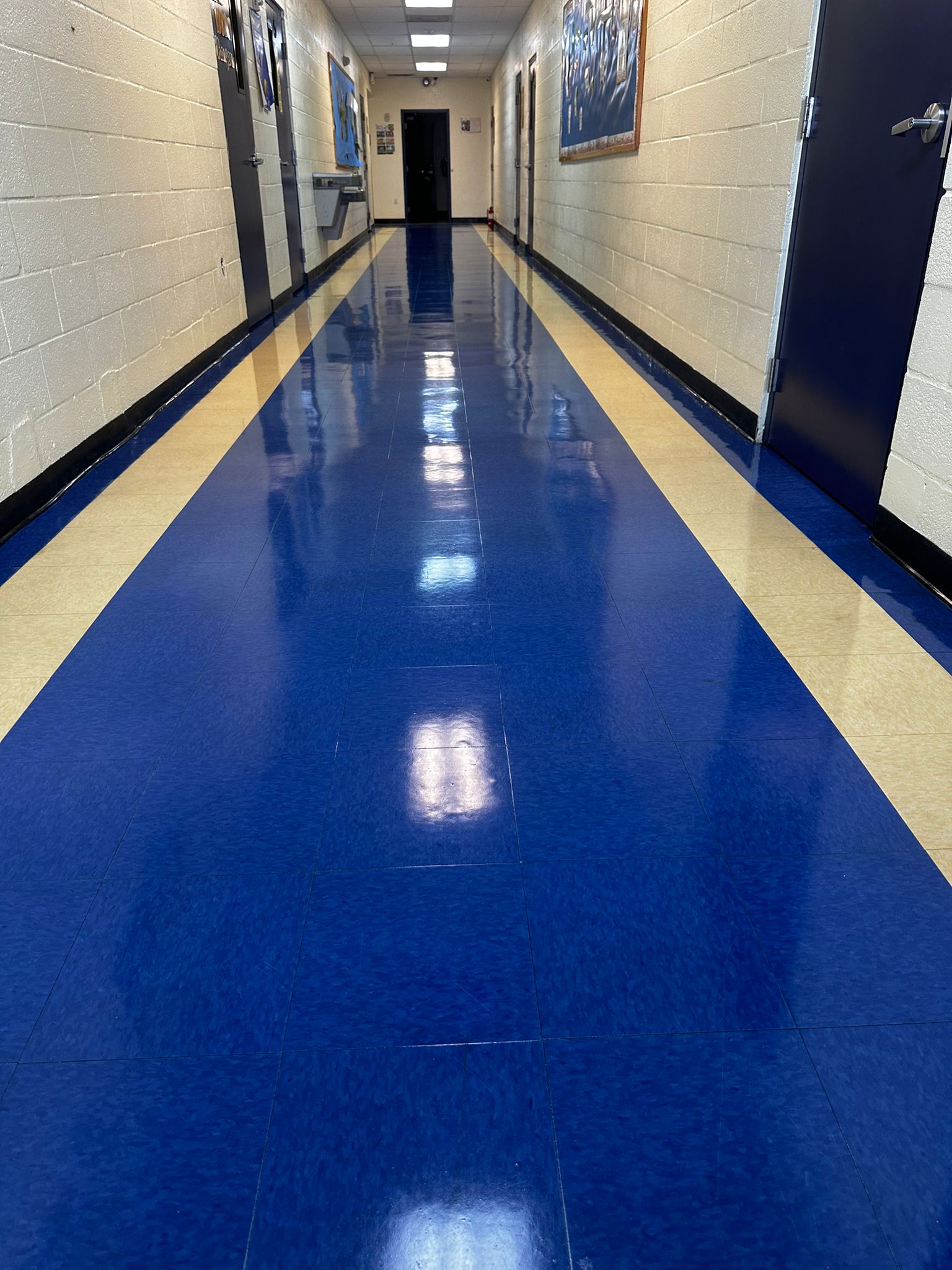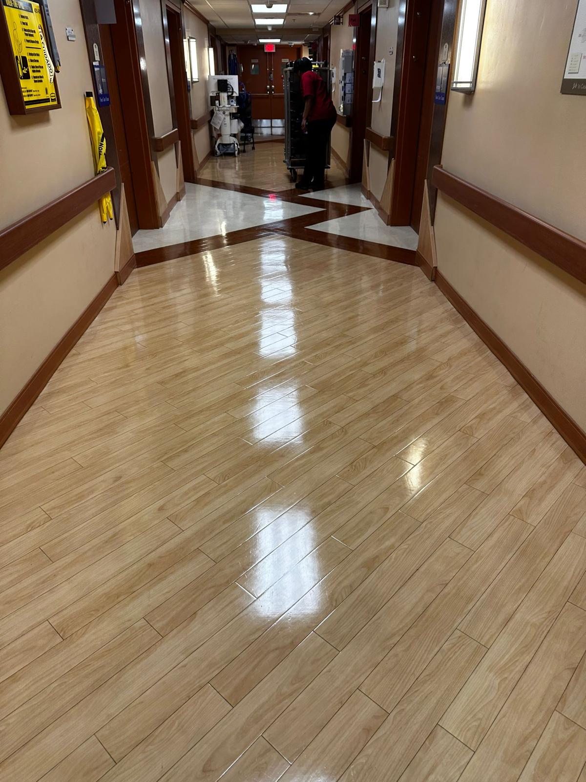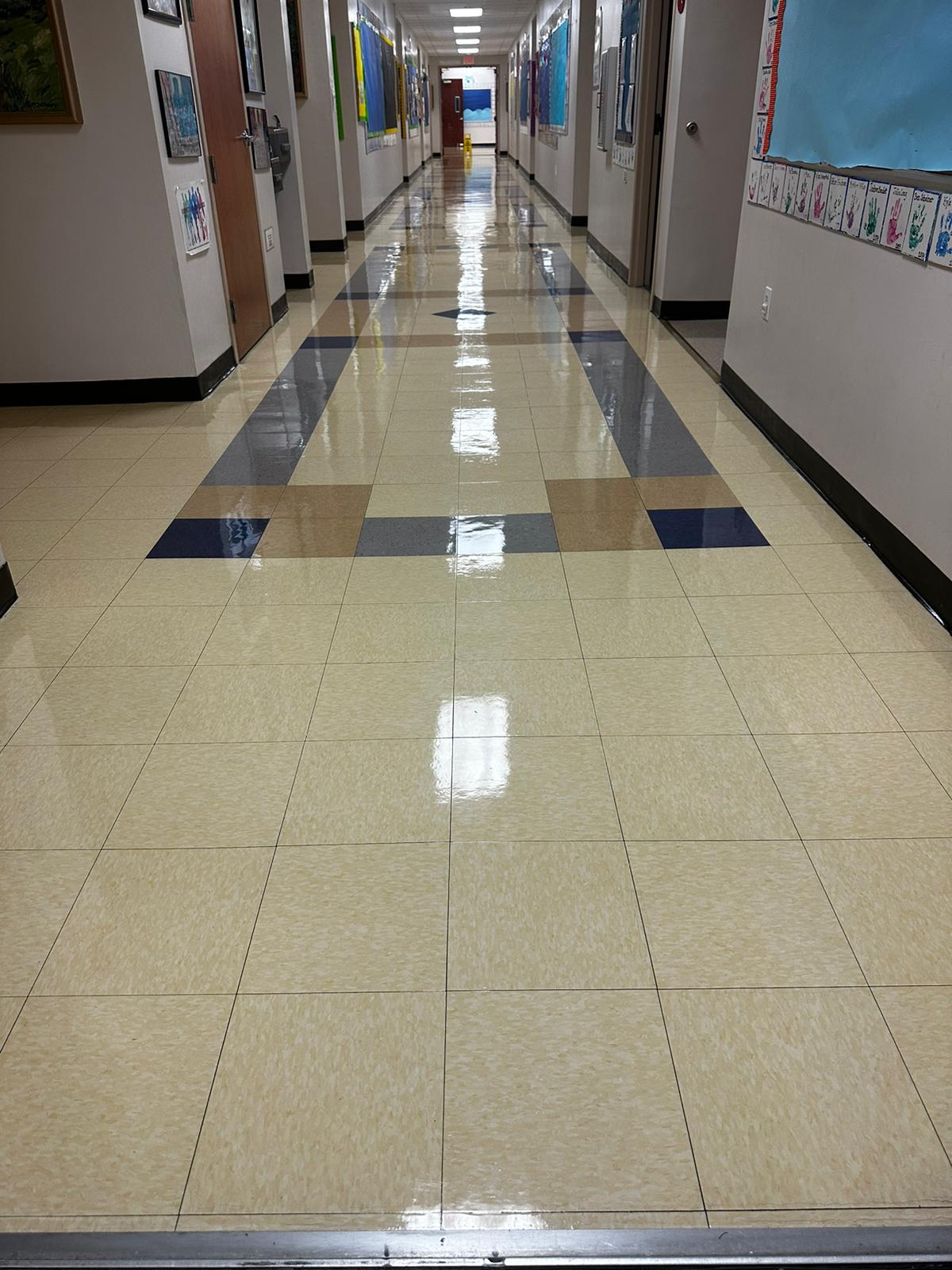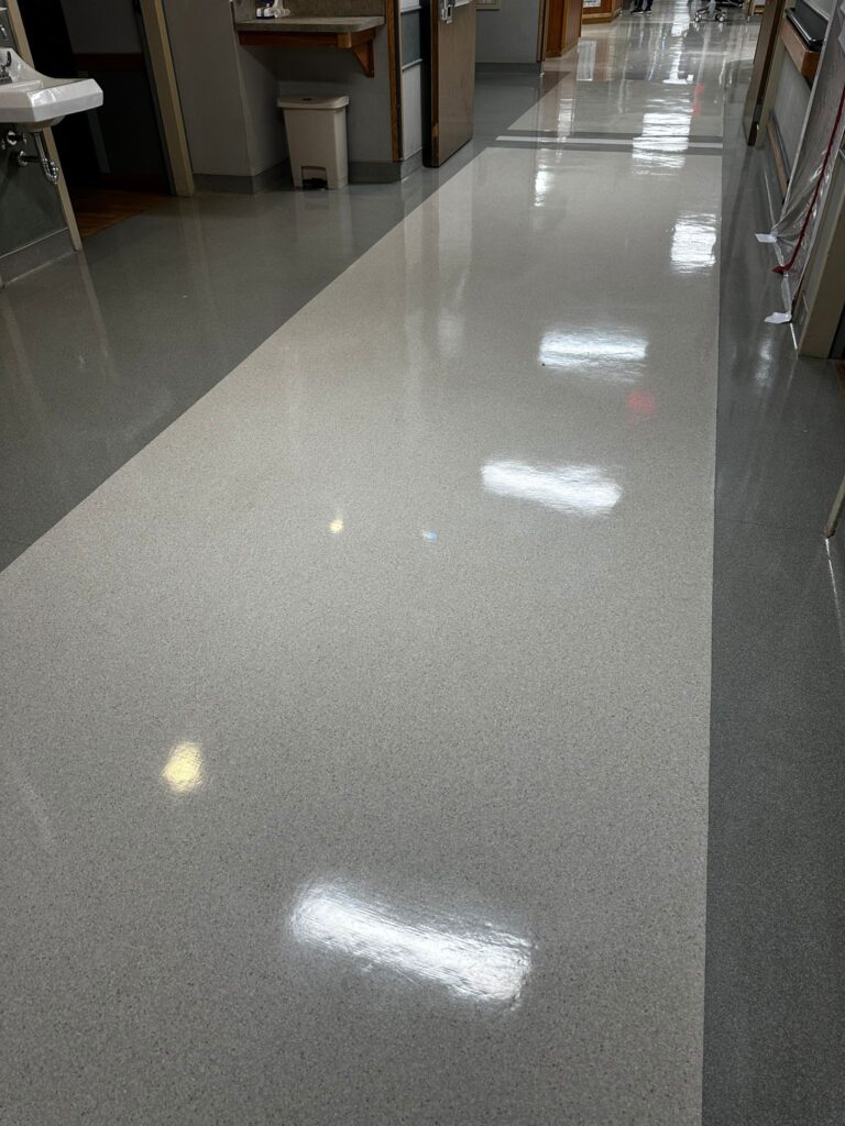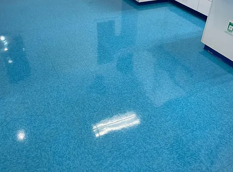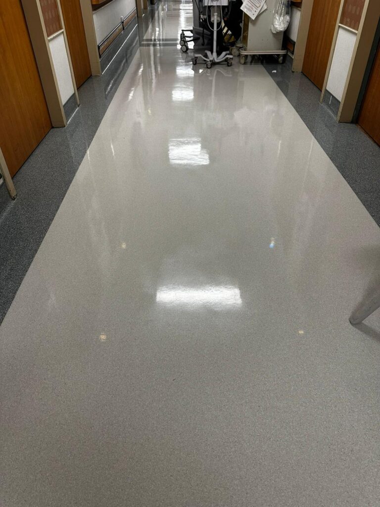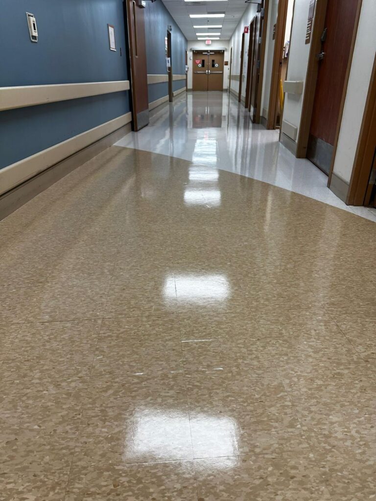 We service VCT (Vinyl Composition Tile), LVT, linoleum, and commercial vinyl sheet flooring in offices, clinics, schools, retail, and government buildings.